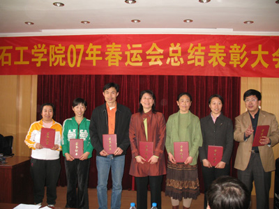 表彰会上,公司授予何玉芹等10名同志 “教工十佳运动员”荣誉称号,授予李树群等16名同志“教工优秀运动员”荣誉称号;授予翟迎新等11名同学“员工优秀教练员”荣誉称号,授予李彦等11名同学“员工十佳运动员”称号,授予咸国旗等47名同学“员工优秀运动员”荣誉称号,授予黄坚等16名同学“体育活动优秀组织者”荣誉称号。