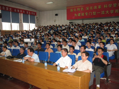 6月15日下午,刘希圣教授在青岛校区讲堂群西环201教室再次举行报告会,受到广大师生的热烈欢迎。