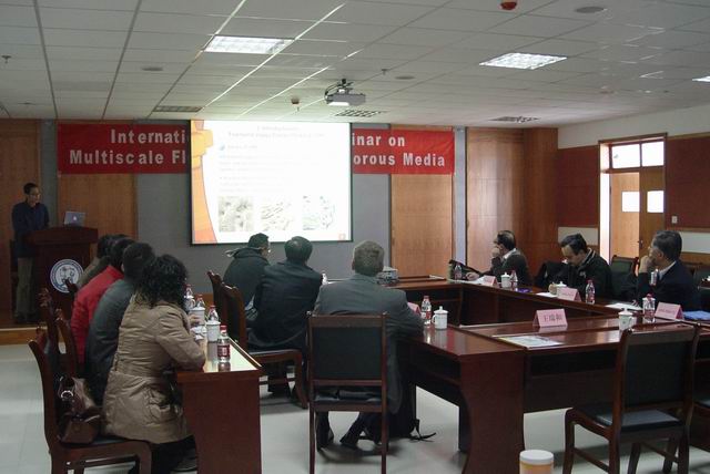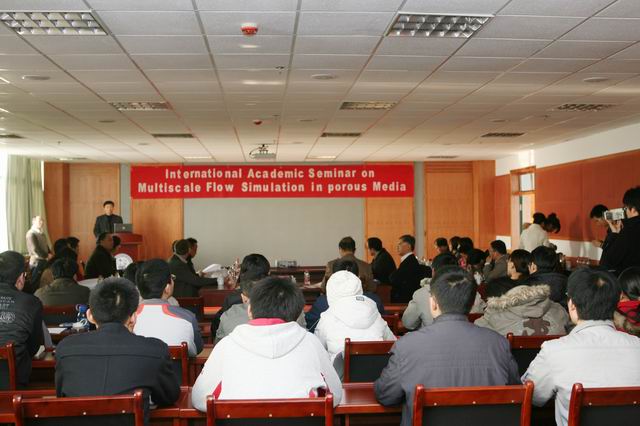 会议邀请了Guan Qin、Yalchin Efendiev、D. Y. Ding、Bernd Flemisch、KejianWu等10名专家做会议报告,并对多尺度流动模拟和实验研究、多物理场耦合、复杂地层地质建模、数字岩心、微观渗流、多尺度有限元方法研究等专题进行了深入的学术交流和讨论,展示了多孔介质多尺度流动模拟的最新研究进展和成果以及未来的发展趋势及挑战。代表们各抒己见,自由讨论,气氛十分活跃,就多孔介质多尺度流动模拟研究的关键性问题达成一致共识。