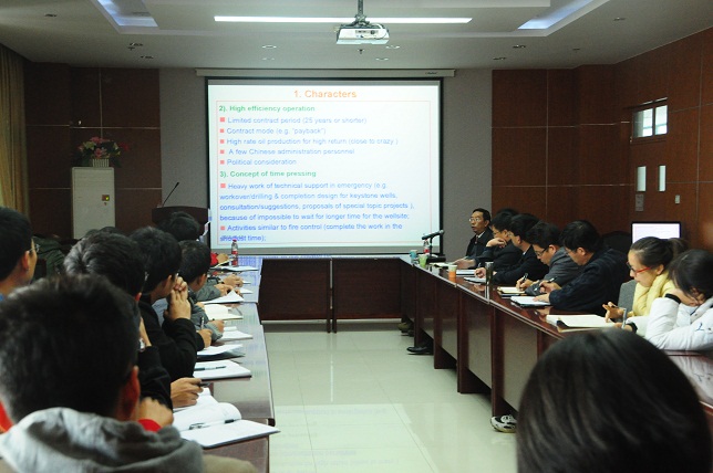 他结合多年来从事海外项目的运作、管理及研发的实践经验,系统介绍了目前海外石油开发项目的基本特点、存在的问题及面临的挑战,重点阐述了国内研发单位尤其是石油高校所具有的优势,以及面对海外项目应具备基本条件和运作模式。报告会后,广大师生就关心的问题与陈端宗进行交流。
