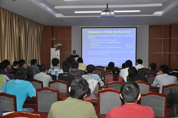 报告首先介绍了页岩气在世界范围内的分布及开采情况以及页岩气储层完井和增产技术的最新研究进展,针对页岩气储层压裂改造技术,着重介绍了压裂液及支撑剂的发展情况,及现场应用实例。最后就中国页岩气开发的潜力及面临的机遇与挑战提出了自己的见解。报告结束后,广大师生就关心的有关技术领域问题与Shah教授进行了互动交流。