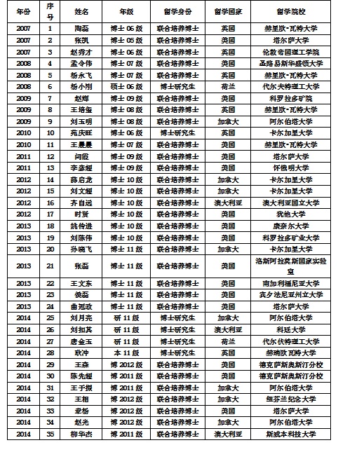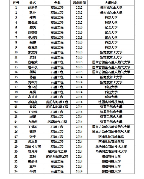 信誉最好的十大体育平台于2012年开始执行CSC项目,公司首批只派出了4名优秀本科生赴科廷大学和新南威尔士大学进修,2015年项目外派人数已增加到28人,国外合作院校已发展到了10所。派出的优秀本科生生源质量受到国外指导教师的一致好评,员工修完回国后,约25%员工选择出国继续读研深造,约75%员工被国内高校保研。具体派出情况见下表。
