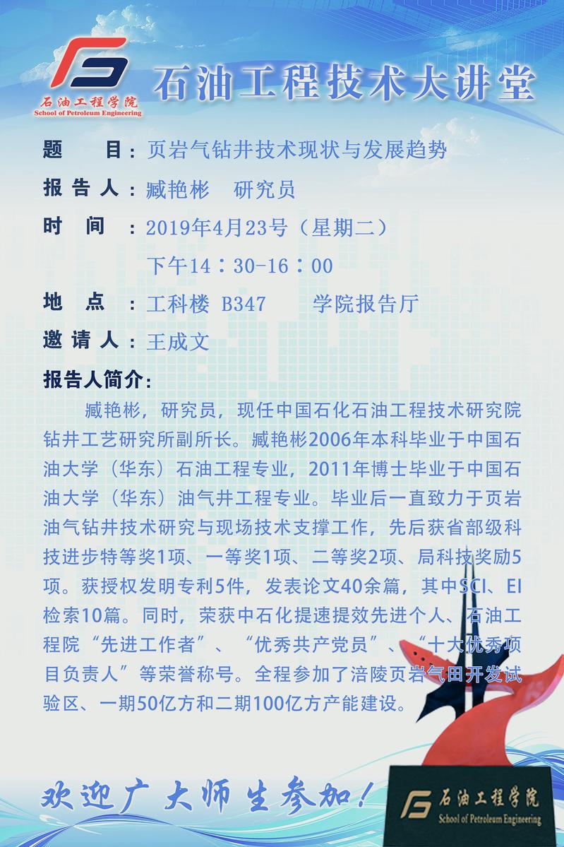 【石油工程技术大讲堂(第14期)】 臧艳彬研究员学术报告