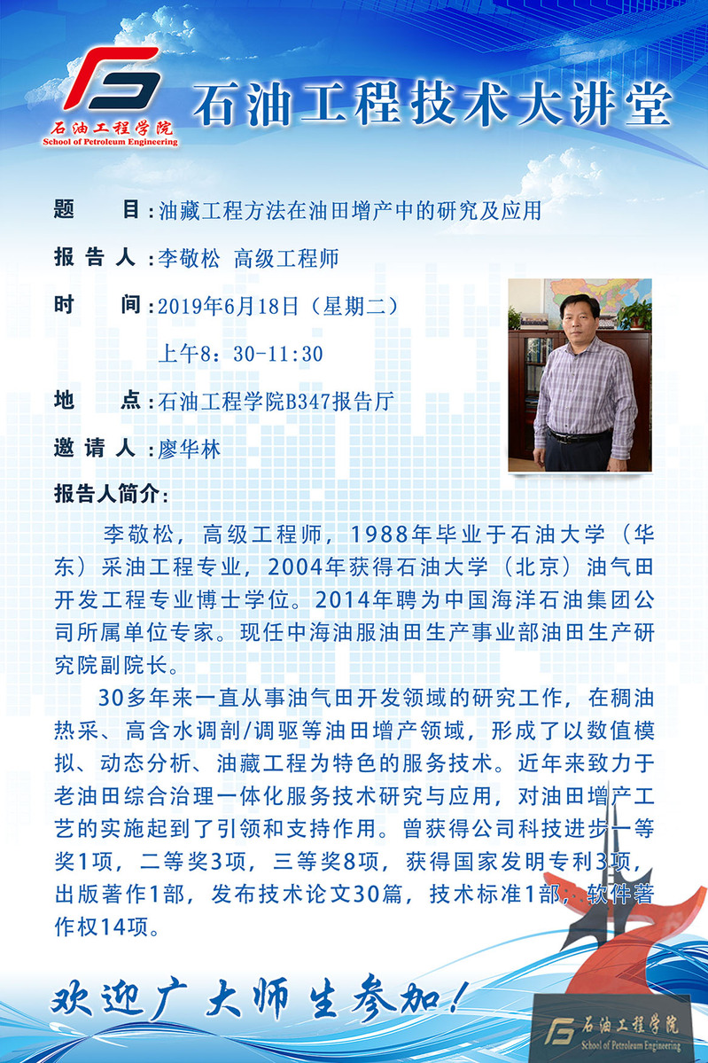 【石油工程技术大讲堂(第22期)】 李敬松高级工程师学术报告