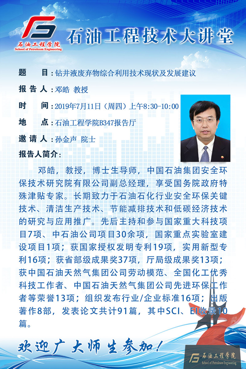 【石油工程技术大讲堂(第24期)】 邓皓教授学术报告