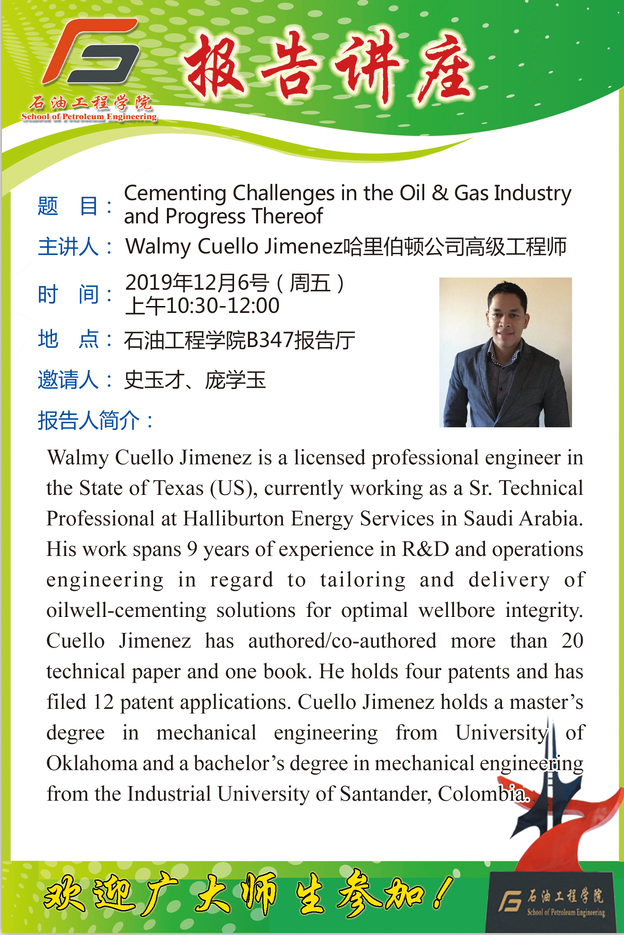 关于听取Walmy Cuello Jimenez高级工程师学术报告的通知