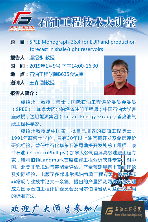 【石油工程技术大讲堂(第30期)】虞绍永教授学术报告