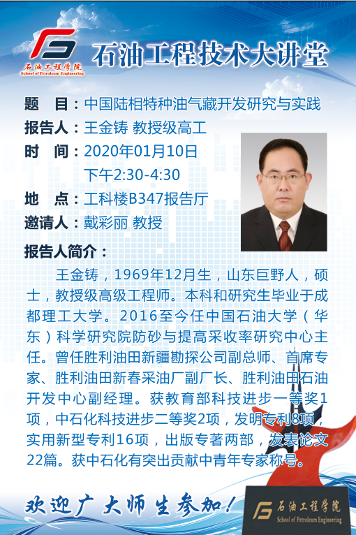 【石油工程技术大讲堂(第31期)】王金铸教授学术报告