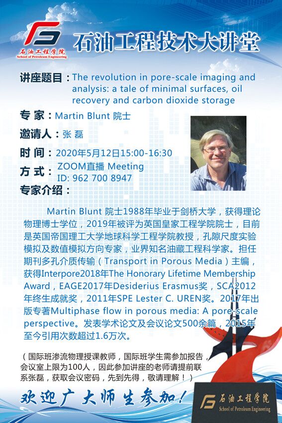 【石油工程技术大讲堂(第32期)】Martin Blunt 院士学术报告