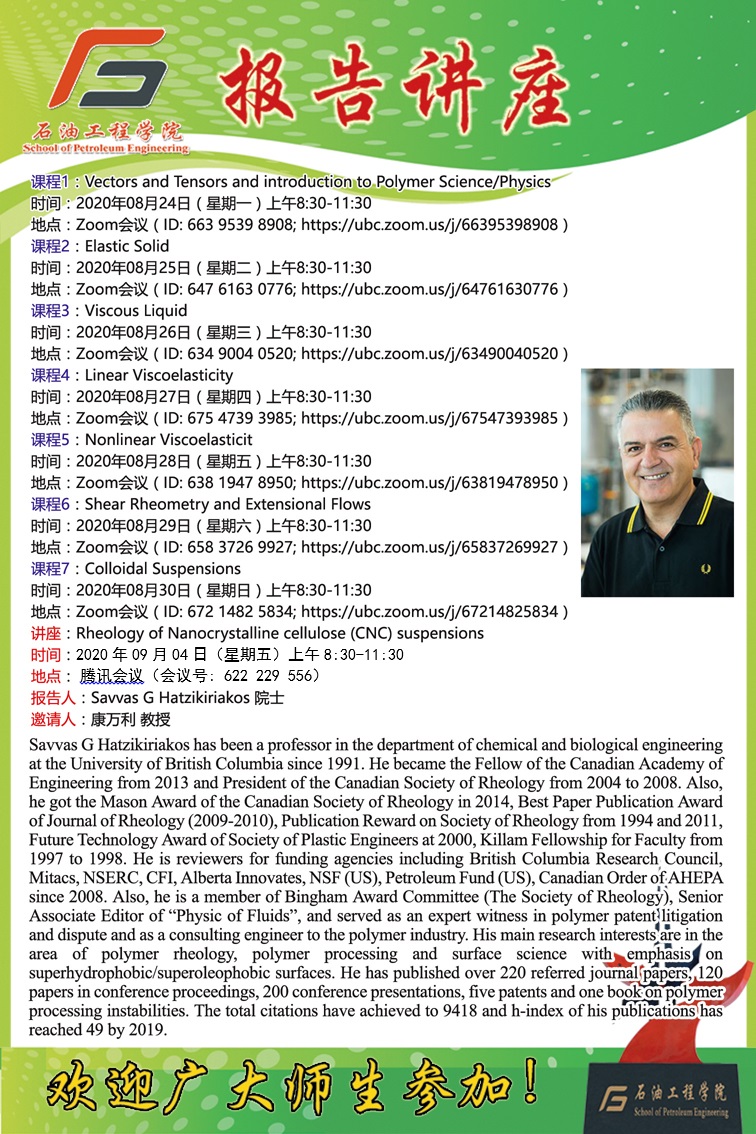 关于听取 Savvas G Hatzikiriakos 院士学术报告的通知