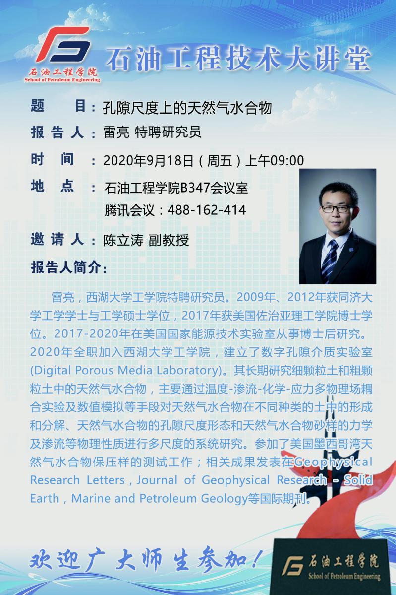 【石油工程技术大讲堂(第33期)】雷亮研究员学术报告