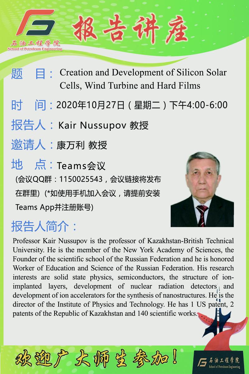 关于听取 Kair Nussupov 教授学术报告的通知