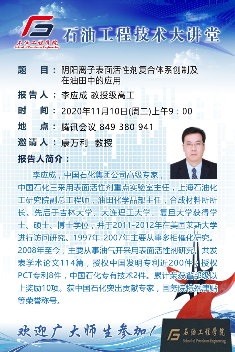 【石油工程技术大讲堂(第34期)】李应成教授级高工学术报告