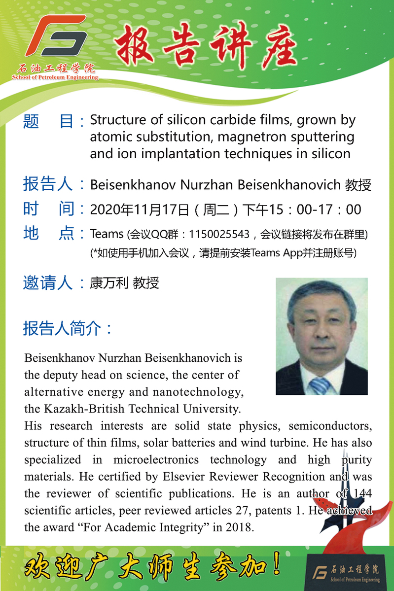关于听取 Beisenkhanov Nurzhan Beisenkhanovich 教授学术报告的通知
