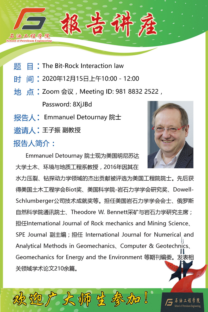 关于听取Emmanuel Detournay院士学术报告的通知
