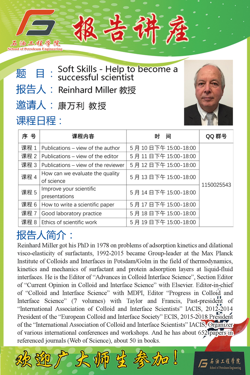 关于听取Reinhard Miller 教授科研能力培养系列课程的通知