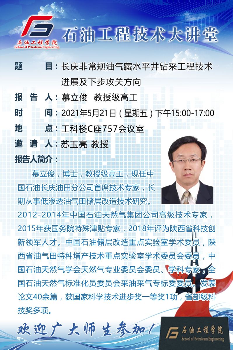 【石油工程技术大讲堂(第36期)】慕立俊教授级高工学术报告