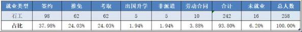 2020届就业率93.80%,其中读研48.06%,出国1.94%,石油国企26.36%,其他企业11.63%