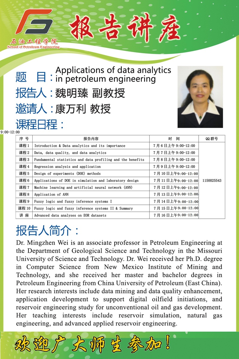 关于听取魏明臻副教授《数据分析在石油工程中的应用》系列课程的通知