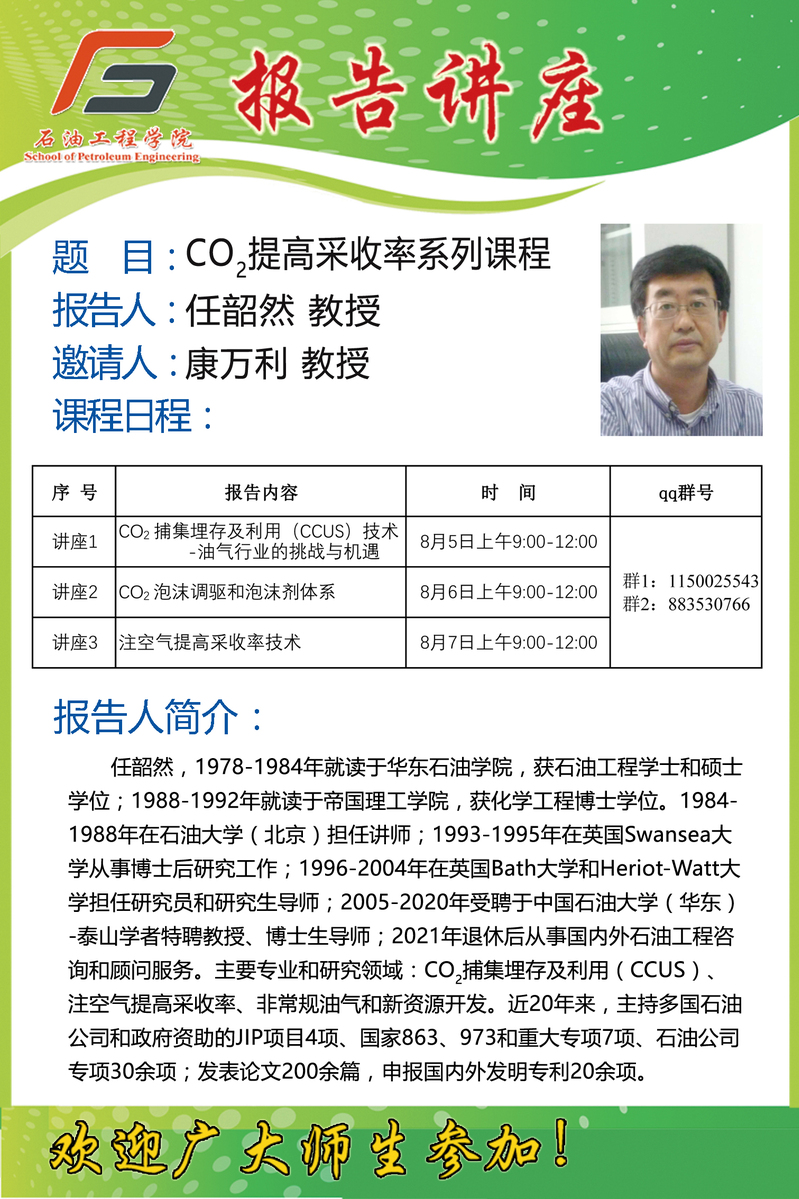 关于听取任韶然教授《CO2提高采收率》系列课程的通知