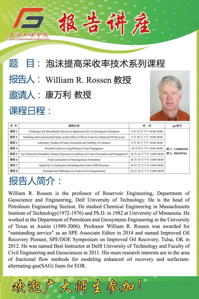 关于听取William R. Rossen 教授《泡沫提高采收率技术》系列课程的通知