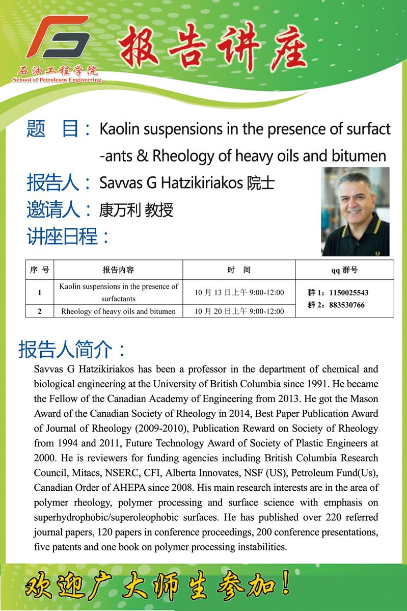 关于听取 Savvas G Hatzikiriakos 院士学术报告的通知
