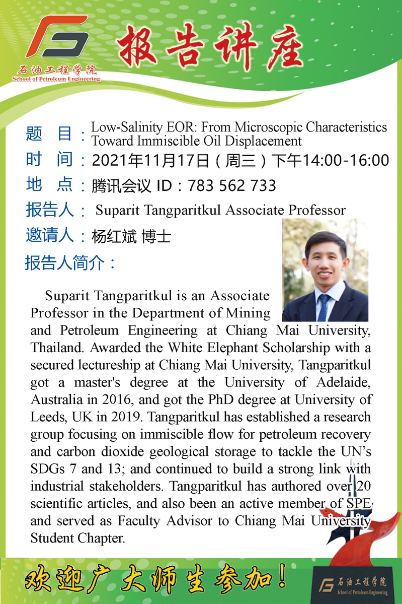 关于听取 Suparit Tangparitkul 副教授学术报告的通知