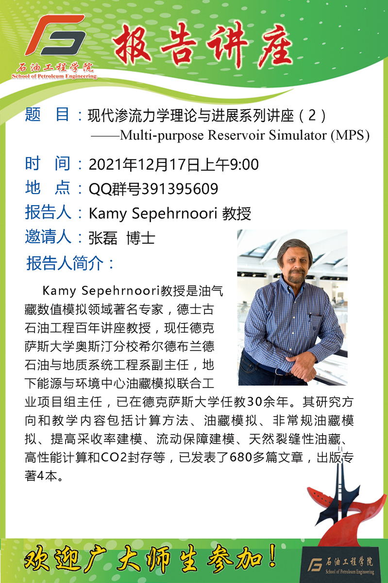 关于听取Kamy Sepehrnoori教授学术报告的通知
