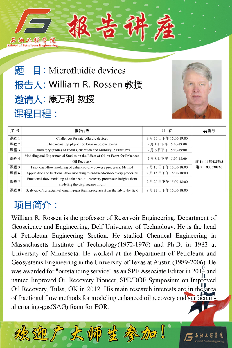 关于听取 William R. Rossen 教授《Microfluidic devices系列课程》的通知