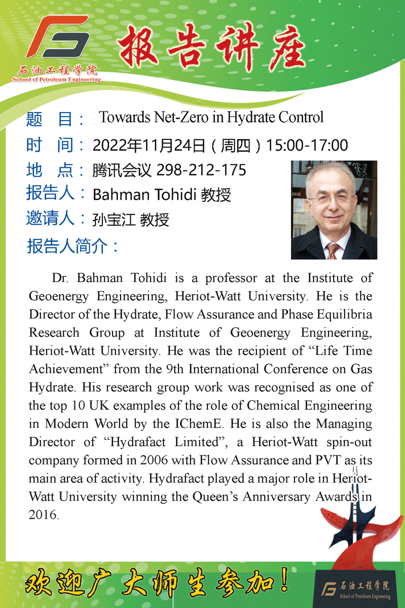 关于听取 Bahman Tohidi 教授学术报告的通知