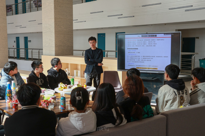活动伊始,钟俊杰教授从自己多年的人生经历出发,围绕着“设定人生提前量”的主题,从“我的提前量”、“研究生与本科生的区别”以及“look around”三方面与员工们就进行了分享讨论。首先,钟俊杰结合自身从本科、博士到博士后三个阶段的学习经历,讲述了提前量的重要性,言辞诚恳地建议同学们要尽早地明确目标,制定清晰的学业规划,提升自我约束能力,提高面对风险的能力。随后,钟俊杰从四个方面指出了研究生与本科生的不同之处,告诫本科生应该将学业成绩放在第一位,学好专业知识,积极参与各类比赛,同时积极与老师进行沟通交流,拓展自己对于专业的认知;告诫研究生应该以科研为主,转变思维方式,提升发现、解决问题的核心能力,主动思考、主动执行、主动沟通,争取领域知识与技能的突破;最后,通过与国外同龄人的对比,指出在激烈的就业形势与人才竞争的大背景下,职业规划就是人生规划,再一次强调了设定人生提前量的重要性。
