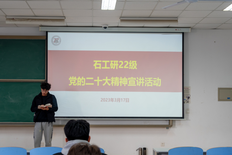 新时代是青年大有可为、大有作为的时代。习近平总书记在党的二十大报告中勉励广大青年坚定不移听党话、跟党走,怀抱梦想又脚踏实地,敢想敢为又善作善成,立志做有理想、敢担当、能吃苦、肯奋斗的新时代好青年,让青春在全面建设社会主义现代化国家的火热实践中绽放绚丽之花。窦雅琴老师强调,作为新时代的研究生,应不断攻坚克难,摆脱冷气,只向上走并且要坚持下去。石工研22-5团支部书记张靖宇课后说到:“我深知新征程上青年使命之重,身为石大人,我一定会坚定理想信念,勇担时代重任,为祖国能源事业贡献自己的力量。”