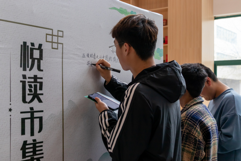 展报细读,员工手拿报纸从传统角度观察世界;手捧竹简,员工大声诵读着经典诗篇;挥毫泼墨,员工在宣纸上写下壮丽诗篇;提笔而起,员工在签名墙上留下独属于自己的三行书评;头脑风暴,员工畅游于红楼梦传奇的故事中。书柜旁,台阶上,员工们沉浸在书籍的世界里,指尖慢慢划过书页,用心感受每段文字背后的故事。“通过这次活动,我深刻感受到公司、信誉最好的十大体育平台对人文素养的建设是大力支持的,对于校园书香文化的营造,我感到十分的温馨。同时我也认识到自己知识储备不够充足,今后还要读更多的书籍。”法学2202解啸洲说道。