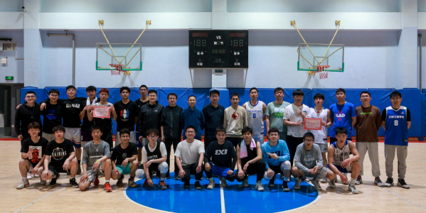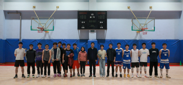 决赛分为两个部分,分别为4节篮球比赛和中场投篮比赛,每节比赛10分钟,中场休息时间举行投篮比赛,由各位老师代表两支队伍进行投篮,得分将直接计入双方比分。随着裁判哨声响起,激烈的比赛正式拉开帷幕。刚一开场,研2022级篮球队队长刘子骜以一记迅雷不及掩耳之势的突破点燃了场下观众的热情,喝彩声、呐喊声、助威声响成一片。上半场比赛,双方队员体力充沛,激烈对抗,积极拼抢、积极跑动、相互配合,每一次投篮都是一次精彩的碰撞。双方比分难以拉开差距,比赛进入白热化阶段。“加油!加油!”“投篮进啦!”观众们在赛场边不断地呼喊,为自己支持的队伍加油助威。中场休息时,黄朝琴副教授、韦贝副教授、周晓东老师、杨琪硕老师分别代表两支队伍进行了投篮比赛,运球、合球、起跳、投篮,一气呵成,都以极高的命中率为各自队伍增加了分数。下半场比赛开始之后,研2022级篮球队利用速度优势突然启用全场紧逼战术,压迫性的防守一度让缺少外线的本科2020级篮球队无所适从,经过短暂的调整,本科2020级篮球队通过身高优势,利用扎实的掩护和大范围的传球破解了全场紧逼,双方球员依旧奋力拼搏,精彩的蝴蝶穿花,背后运球,后仰跳投,一个个精彩的潇洒的动作,将比赛推向高潮。最终,在裁判的悠长哨声中迎来了这场酣畅淋漓的决赛的结束,比赛记分牌定格在59:35,研2022级摘得桂冠,获得本次比赛的冠军,本科2020级获得本次比赛亚军。