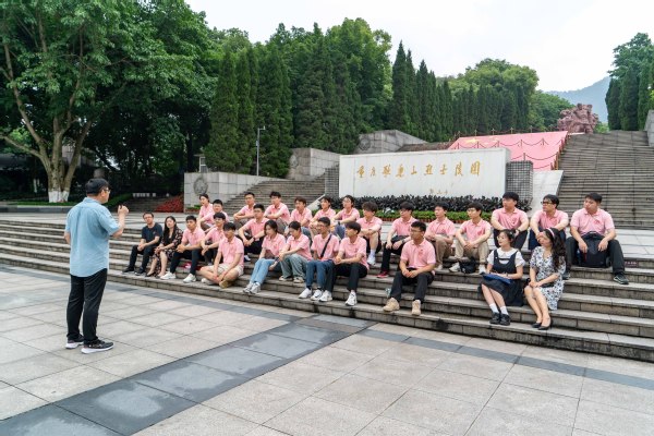 最后,博士团来到红岩魂广场,来到镌刻着邓小平题写的重庆歌乐山烈士陵园纪念碑。纪念碑前,汝绪华从江姐和小萝卜头的故事出发,结合实践研学经历,为博士团成员上了一堂生动形象的思政课。