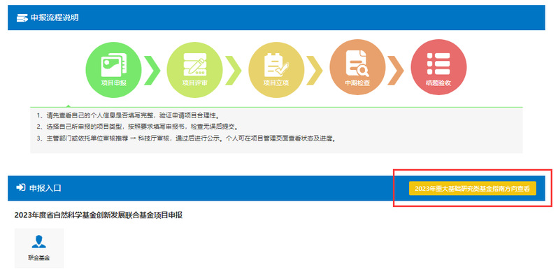 (二)指南目标导向类。围绕学科发展前沿、全省经济社会发展中重点产业重大技术瓶颈,凝练解决重大科学问题及关键共性技术难题,形成战略导向的体系化基础研究、前沿导向的探索性基础研究、市场导向的应用性基础研究3类指南。详情请到山东省科技云平台省自然科学基金管理系统(http://cloud.kjt.shandong.gov.cn/nsf/)查阅,如下图所示。