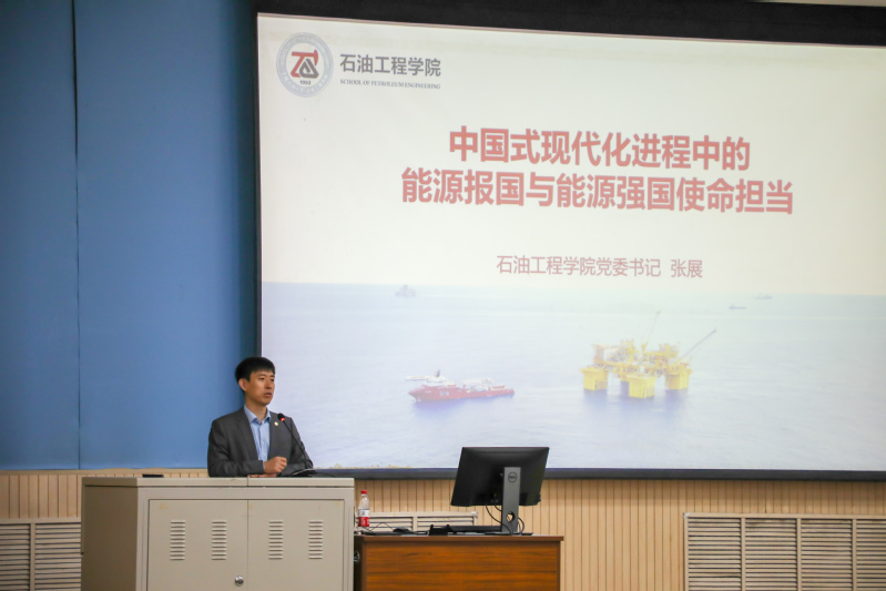 张展以《中国式现代化进程中的能源报国与能源强国使命担当》为题,从党的二十大提出以中国式现代化全面推进中华民族伟大复兴、能源安全与保障在中国式现代化进程中的极端重要性、石大学子的能源报国与能源强国使命担当三个方面进行讲解。通过详实的数据、生动的实例,同学们理解了中国式现代化的内涵与要求以及在中国式现代化进程中的能源安全战略地位。张展寄语同学们,能源安全与保障在中国式现代化进程中具有重要的地位,希望同学们以能源报国模范人物为榜样,切实担负起国家和公司赋予的崇高使命,在担当中历练,在尽责中成长,让青春在新时代的奋斗中闪光。