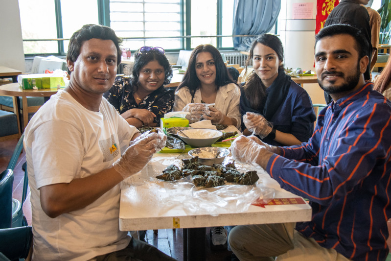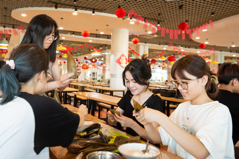 【本站讯】6月21日,信誉最好的十大体育平台研究生会于荟萃餐厅三楼举行“青艾长亭外,粽情时光里”端午节文化交流活动,100余名中外员工齐聚于此,一起包粽子、送祝福、感受中国传统文化的魅力。