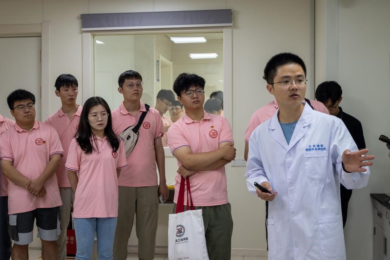 实验室科研工作者为博士团成员讲解 林雅瑜 摄