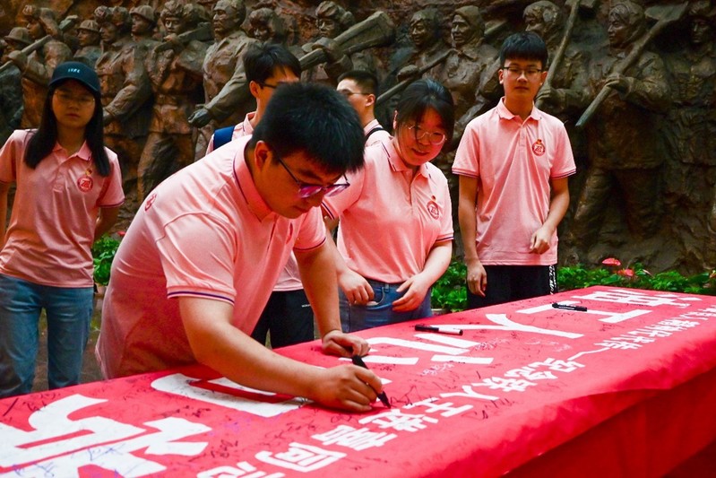 博士团成员为铁人百年诞辰留名纪念 林雅瑜 摄