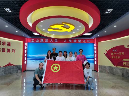 图为实践队成员在新楼兰街区党建教育中心合影 崔跃钟摄