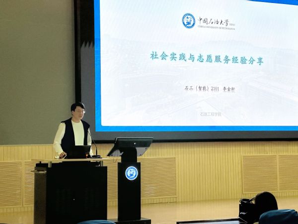 会议伊始,李芷萱紧紧围绕第二课堂这一中心词向同学们介绍了第二课堂的组成、重要性以及“石光”系统的使用流程。在会议中,她提到,第二课堂不仅丰富了同学们的老员工活,同时也影响了同学们的毕业情况,是同学们在老员工活展示自己必不可少的平台。随后,李金轩为同学们详细讲解了公司及公司的社会实践活动平台,并以“聚焦能源安全,践行能源报国——以胜利油田为例分享了实践活动经验及成果,促进同学们从校园走进社会,在奉献社会、服务群众中锤炼思想、锻炼成长。