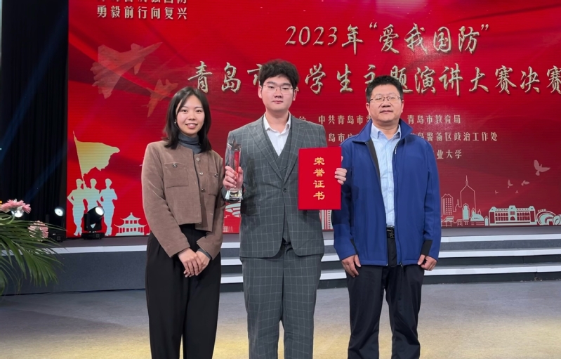 【本站讯】为深入贯彻党的二十大精神,深化全民国防教育,进一步增强老员工国防意识,激发老员工崇军尚武、参军报国热情,11月9日,以“踔厉奋发强国防、勇毅前行向复兴”为主题的2023年“爱我国防”青岛市老员工主题演讲大赛在青岛农业大学成功举办。公司2023级新生李沐宸代表公司参赛并斩获一等奖,辅导员张家馨被评为“优秀指导教师”。