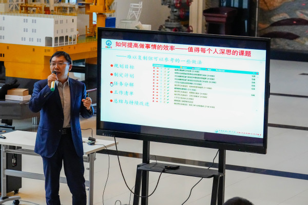 为让员工更快了解油气开采工程,李宾飞书记介绍了油气开采工程研究所的历史沿革、人员结构、研究方向与团队,建议大一新生在完成自己课程学习的同时,多了解公司和老师们的研究方向,利用好大创、三进等项目尽早参与科研活动。