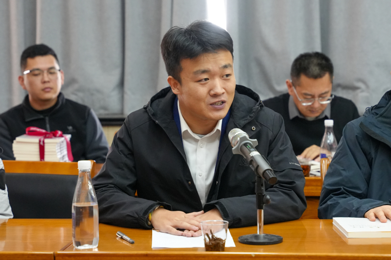 员工代表周家豪发言。他讲述了参与院史编撰工作的切身经历和心得体会,为公司70年的光辉历史表示由衷赞叹,并向院史编写组的老师们表示敬佩与感谢。结合采访公司老教授时的所见所闻,他感受到公司始终葆有扎根第一线、瞄准最前沿、争做排头兵的作风与气质,并将这种气质在一代代师生中传承发展,逐渐成为“石工人”共同的精神印记,成为公司高质量发展的精神源泉。