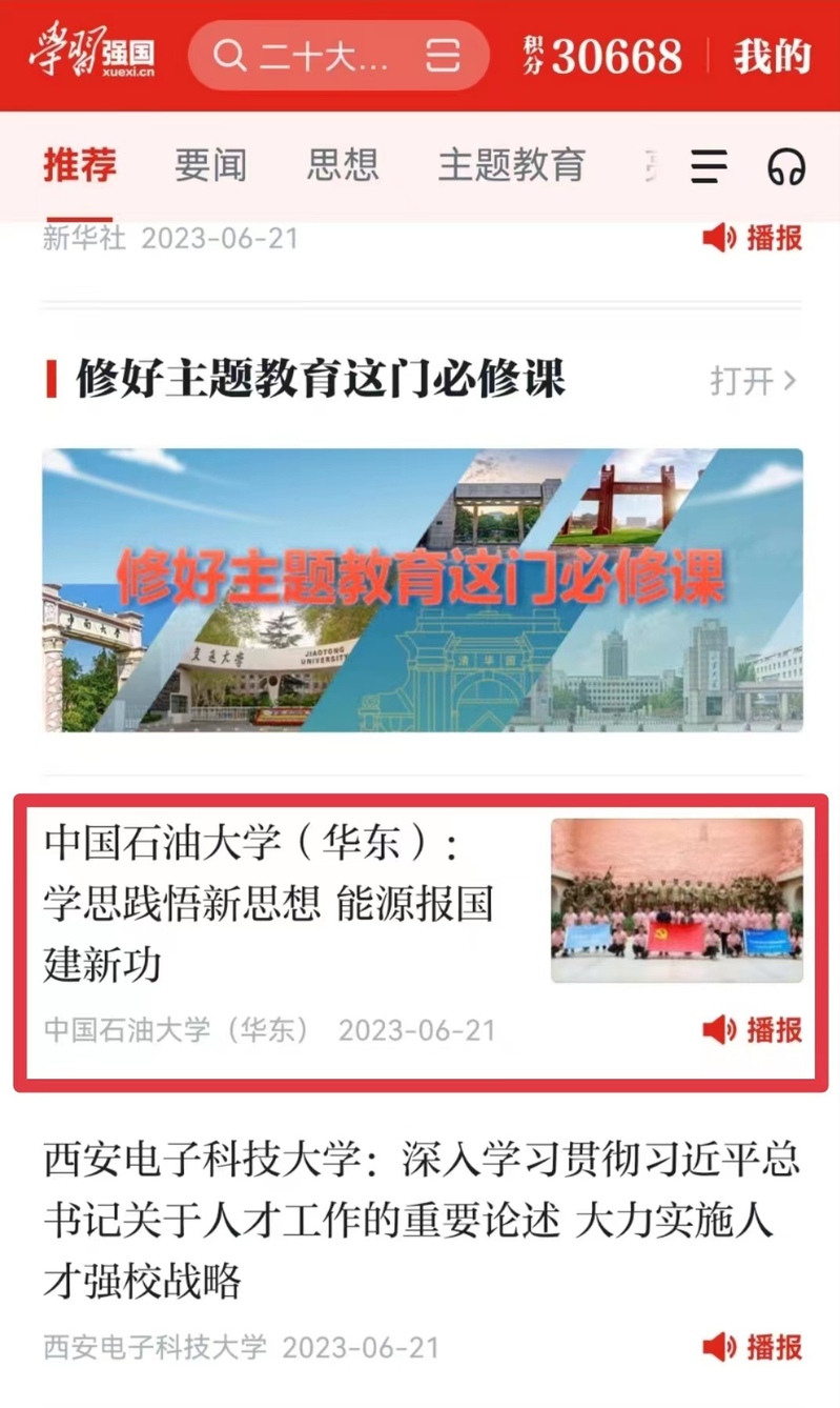 公司党委严格落实公司关于扎实开展学习贯彻习近平新时代中国特色社会主义思想主题教育的工作要求,周密部署,广泛动员,精心组织,扎实推进,把高质量开展主题教育作为首要政治任务,确保主题教育走深走实、见行见效。以“学思践悟新思想,能源报国建新功”为主题精心打造“行走的思政课”活动品牌,获学习强国、中国教育报、中国青年网等各级媒体广泛报道,相关成果获第八届青岛高校思想政治工作集体创新奖。“向党心·石油魂”全国先进基层党组织党建教育基地入选青岛西海岸新区“建功新时代”主题党日特色阵地,累计接待2500余人次,充分发挥了全国先进基层党组织的辐射带动作用。公司上下统一思想、凝心聚力,高质量发展势头正劲。