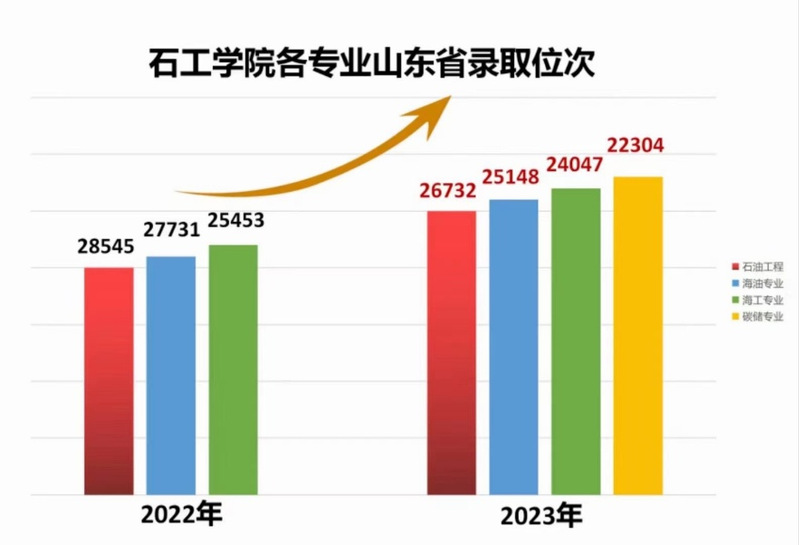 2023年,公司各专业在主要招生省份的位次较去年有明显提升。以山东省为例,石油工程专业、海洋油气工程专业的招生位次上升2000名左右,船舶与海洋工程专业的招生位次上升1000名。碳储科学与工程专业首次招生,录取位次在全校60个专业中排名第22。研究生招生方面,公司今年共录取各类研究生394人,一志愿录取率88.3%。其中193人来自于“双一流”建设高校,占比64.5%;接收推免生共82人,其中外校推免生19人,较2022年增加90%。