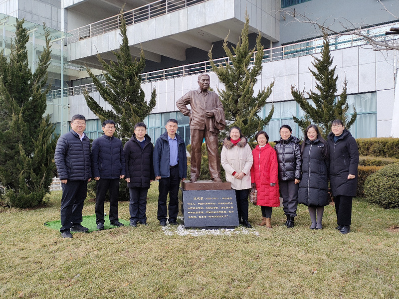 参会人员在沈忠厚院士塑像旁合影