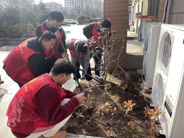植树活动现场,志愿者们满怀热情,手持植树工具,全身心投入到这项绿色事业中。挖坑、种树、填土、施肥、灌溉,每一个步骤都细致入微,大家配合默契,共同为社区增添一抹新绿。志愿者们充分发扬团结互助的精神,劲往一处使,汗往一处流,用实际行动践行绿色发展理念,展现了对美丽家园的热爱与责任。与此同时,在净化社区活动现场,一群身穿红马甲的青年志愿者在在职党员志愿者的带领下,手持扫把、簸箕、夹子等卫生工具,分工协作,发扬不怕脏、不怕累、不怕苦的精神,对春江悦茗小区外围的绿化带、花圃和地砖缝隙进行了彻底清理。他们精神饱满、干劲十足,经过一个小时的共同努力,小区居住环境焕然一新,卫生面貌得到了显著改善。此次活动不仅增强了同学们的绿化和环保意识,更激发了大家爱绿护绿的热情。志愿者们用实际行动为社区环境美化贡献力量,争做绿色使者,共同守护美丽家园。