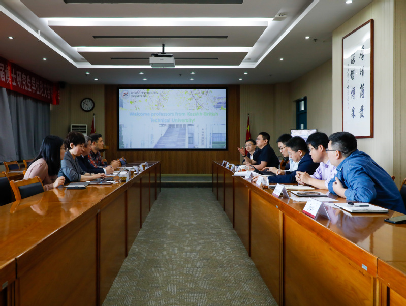 【本站讯】5月29日上午,哈萨克斯坦哈英科技大学能源与石油工业公司副经理Tikebaev Talgat教授、Bauyrzhan Sarsenbekuly副教授访问我院。国际教育公司副经理张志英、公司副经理杨永飞、齐宁、黄维安及部分教师代表和国际教育公司招生办工作人员与来宾座谈交流合作事宜。